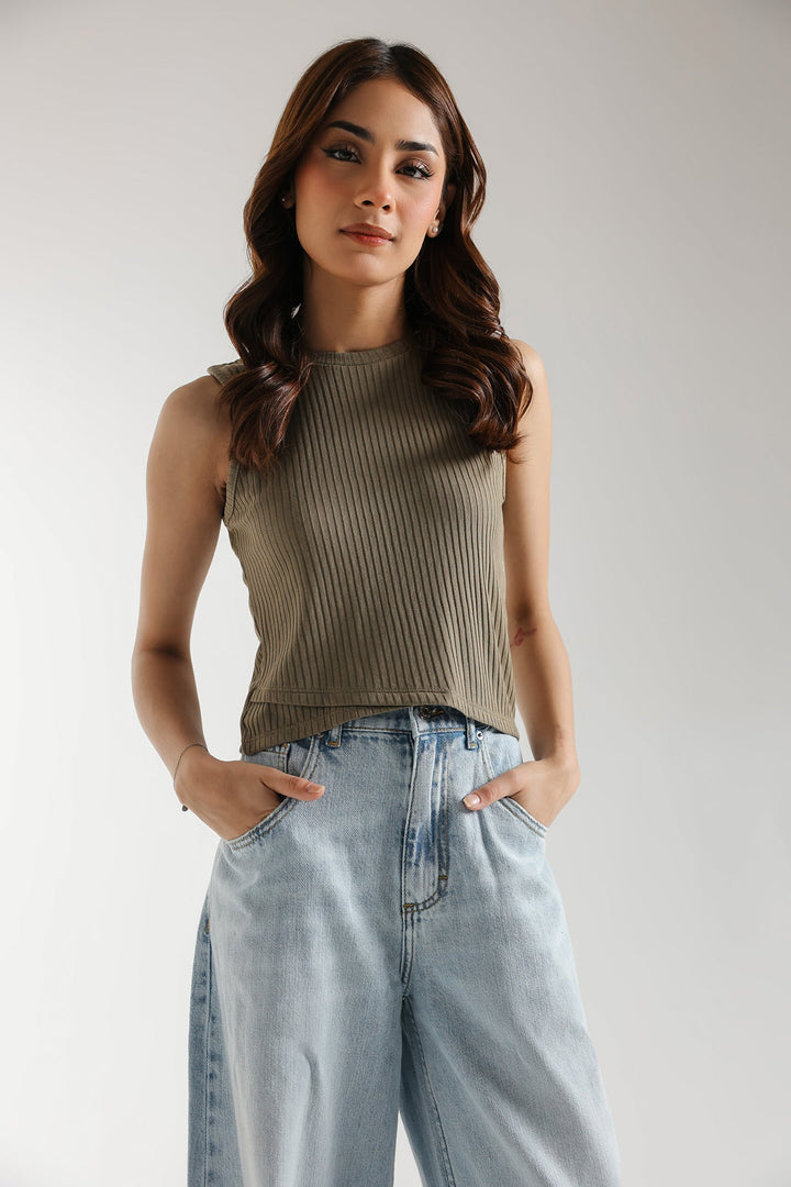 Elevate your style with our mesmerizing top. This classy sleeveless top features a trendy cropped silhouette, round neck, and ribbed composition. Perfect for fun events, make a statement this season with our contemporary top.