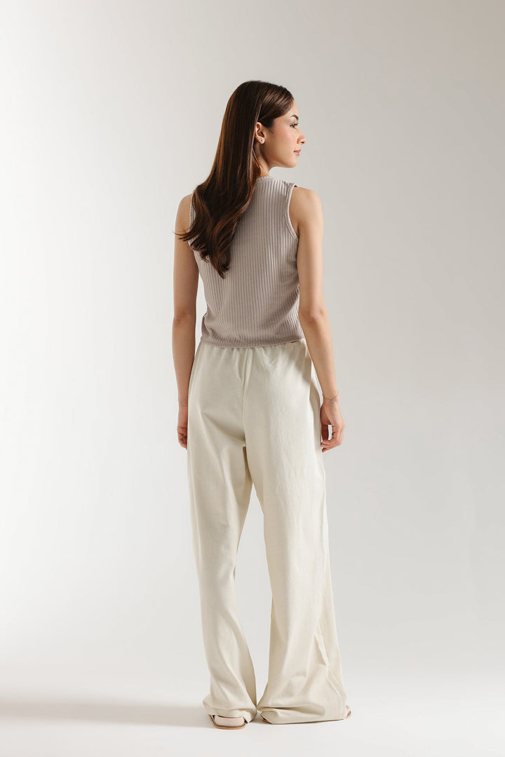 Elevate your style with our mesmerizing top. This classy sleeveless top features a trendy cropped silhouette, round neck, and ribbed composition. Perfect for fun events, make a statement this season with our contemporary top.