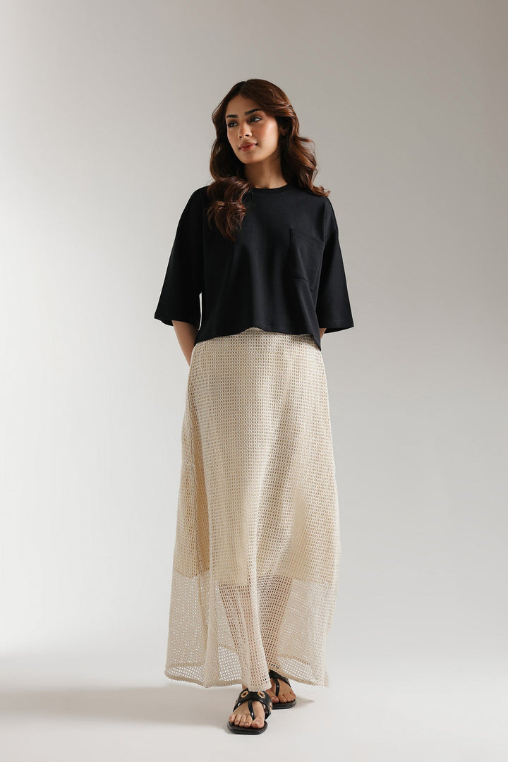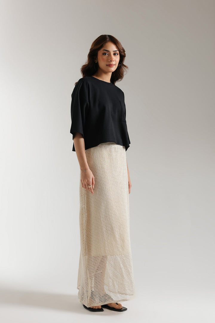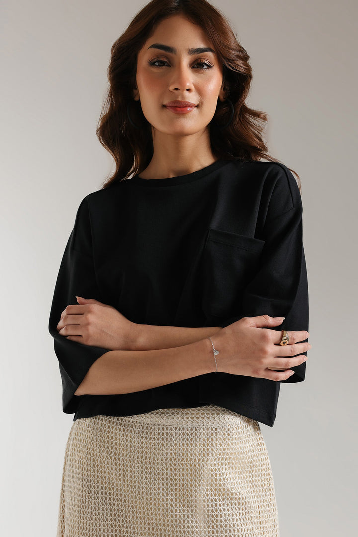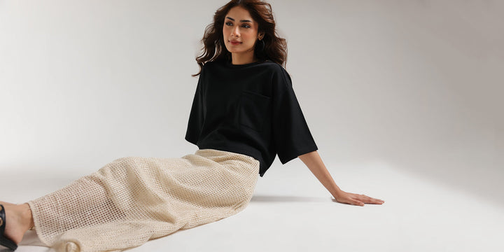 A mesmerizing classy loose fit top crafted in a trendy silhouette with round neck and short sleeves beautifully illustrating a solid composition. With a pocket at front, style this contemporary top at fun events and make a statement this season
