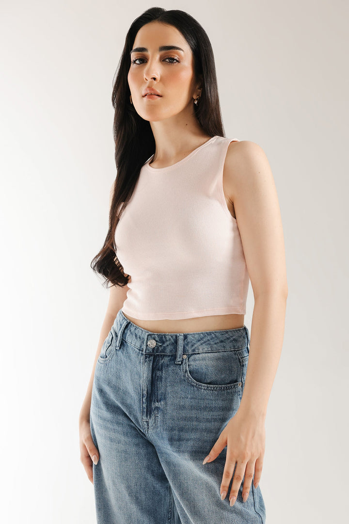A timeless essential for your modern wardrobe, this crisp ice pink top is the perfect foundation for any look. The sleek, sleeveless silhouette is crafted from a comfortable, ribbed knit fabric that offers a flattering fit. Versatile enough to be styled on its own or as a chic layering piece, this top is an effortlessly stylish addition to your collection.