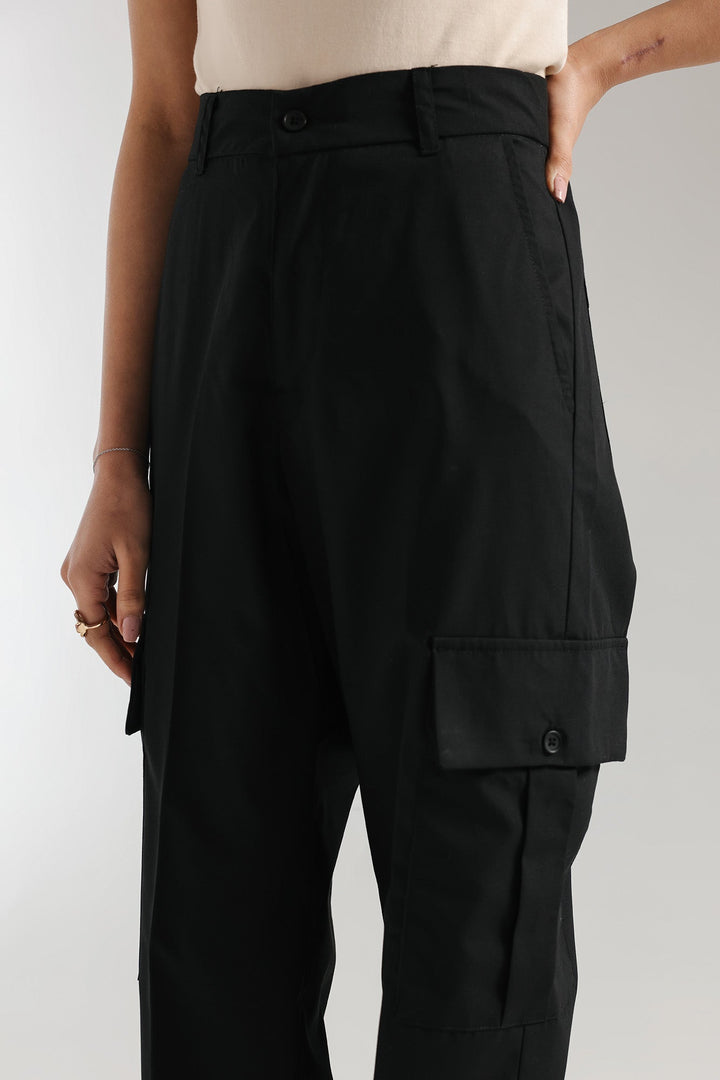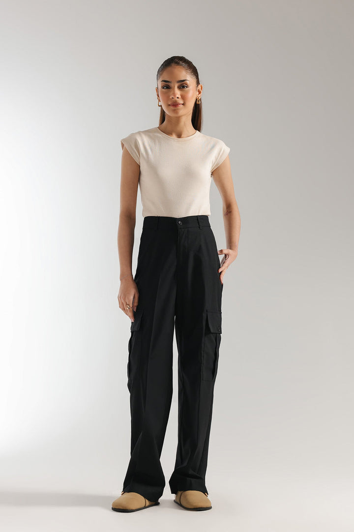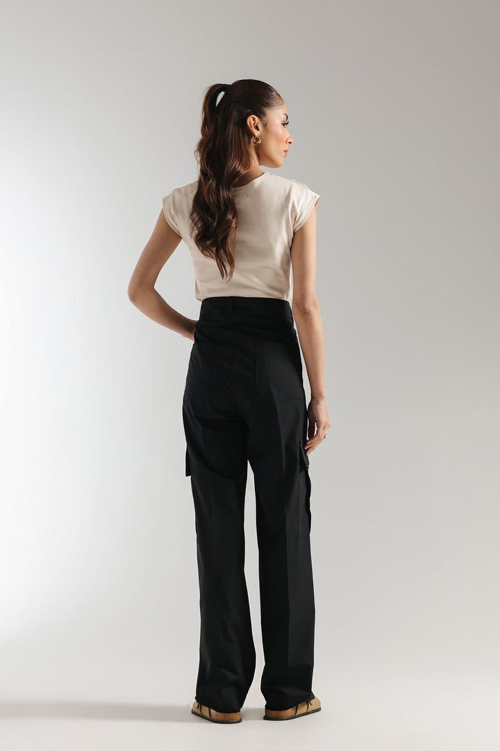 Look classy this season in this style statement trouser rendered in a deep black shade. It is crafted in a perfectly flared silhouette with pleats and adorned with flap pocket at sides with button closure. Be the epitome of grace and sophistication in this contemporary trouser and embrace at formal events this season.