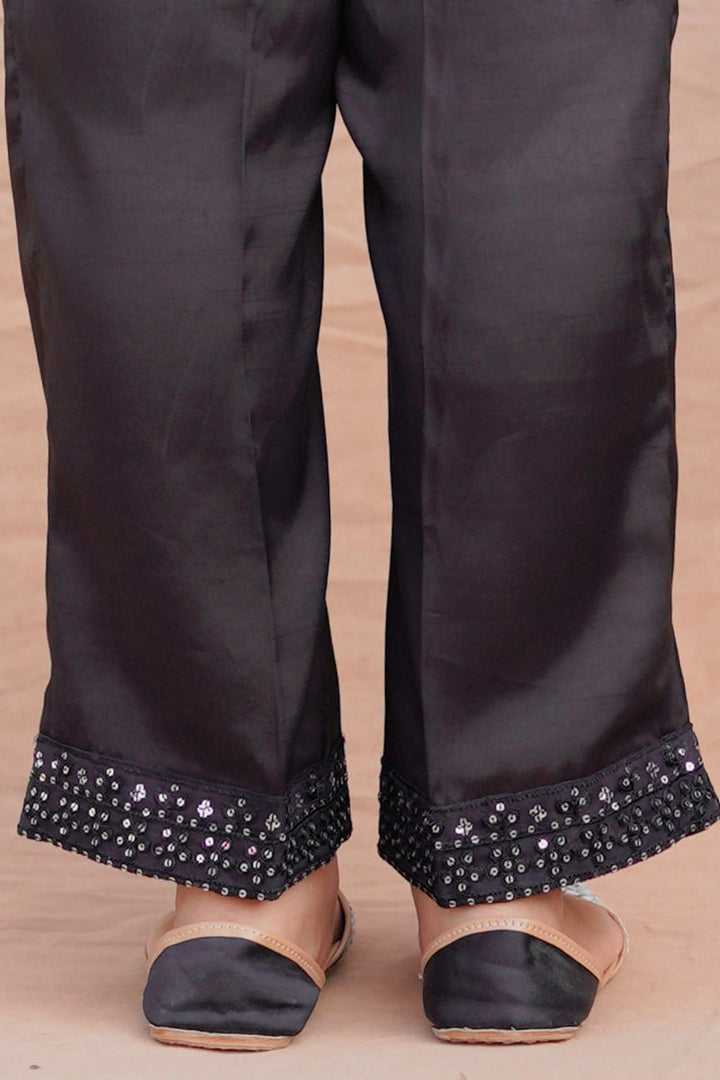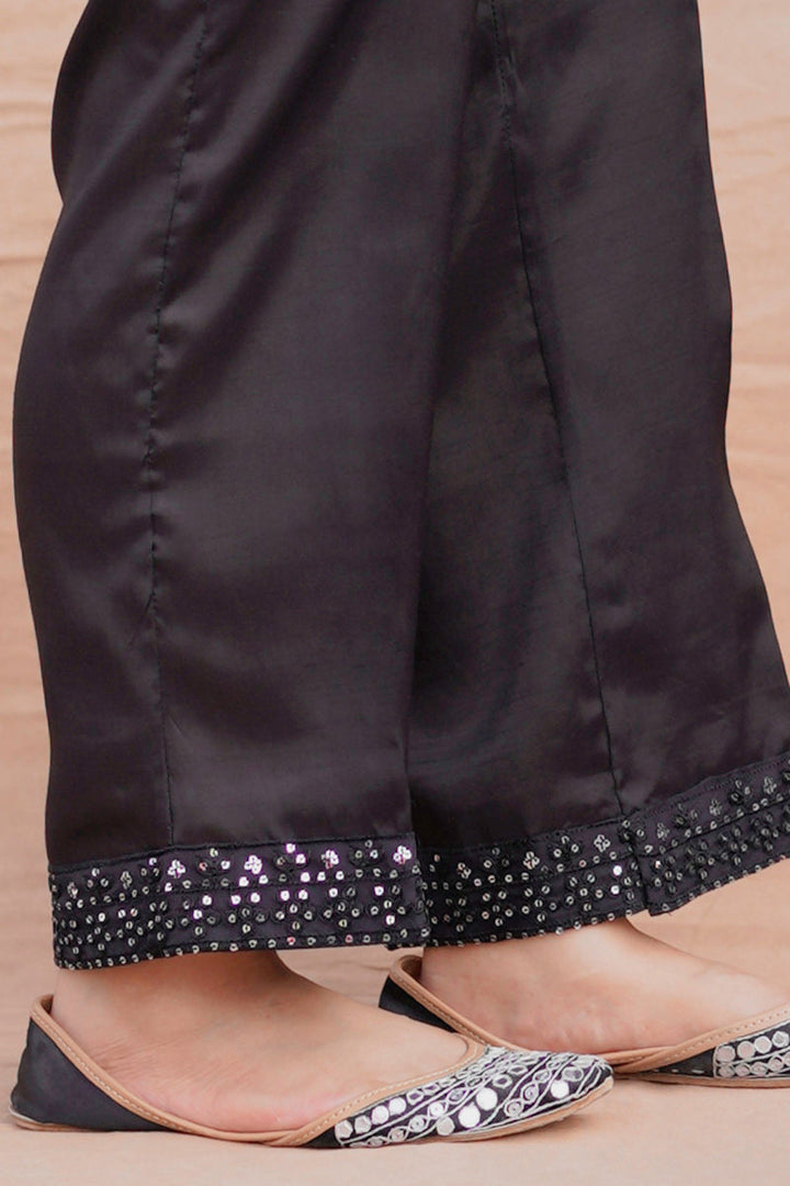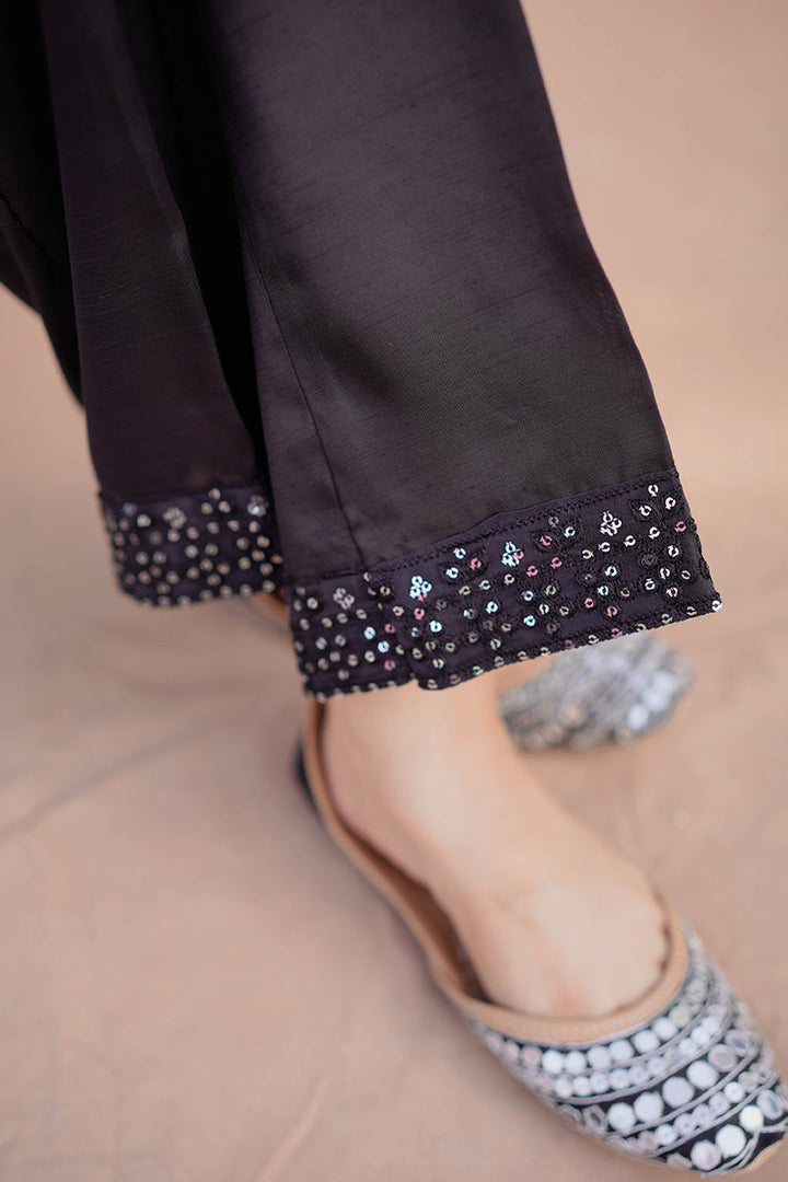 STRAIGHT SEQUIN EMBROIDERED RAW SILK PANTS