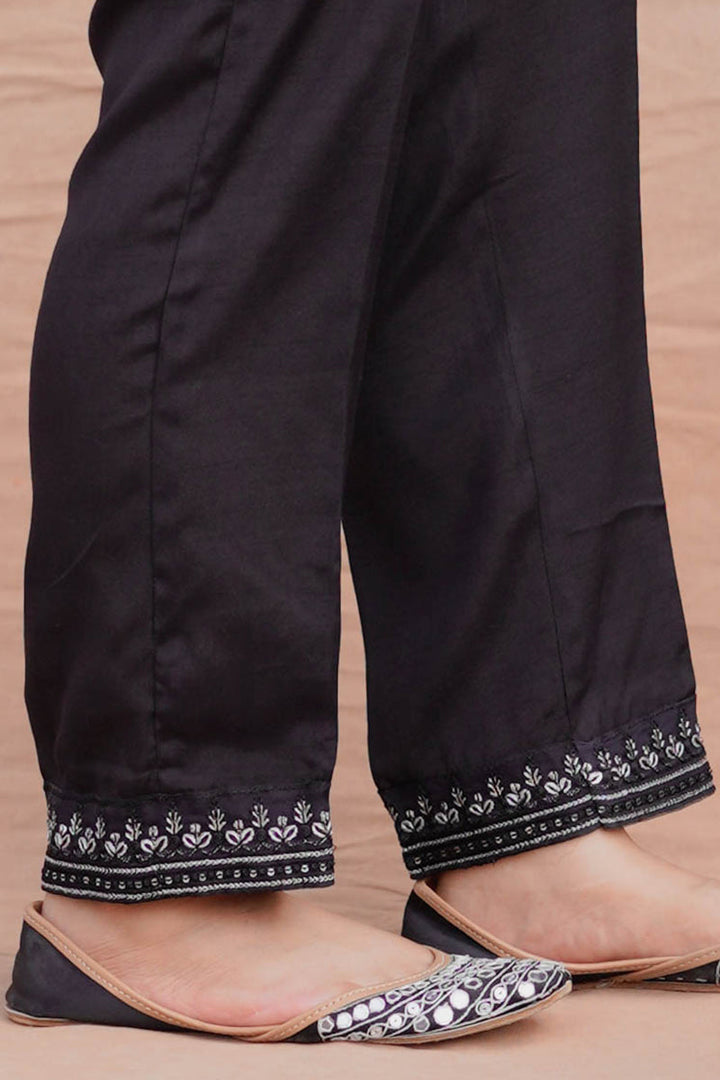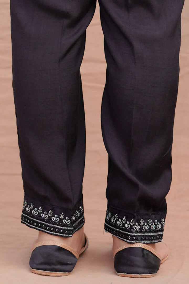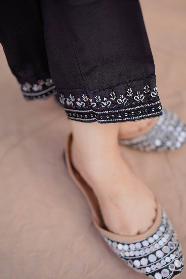 STRAIGHT FITTED RAW SILK SEQUIN EMBROIDERED PANTS