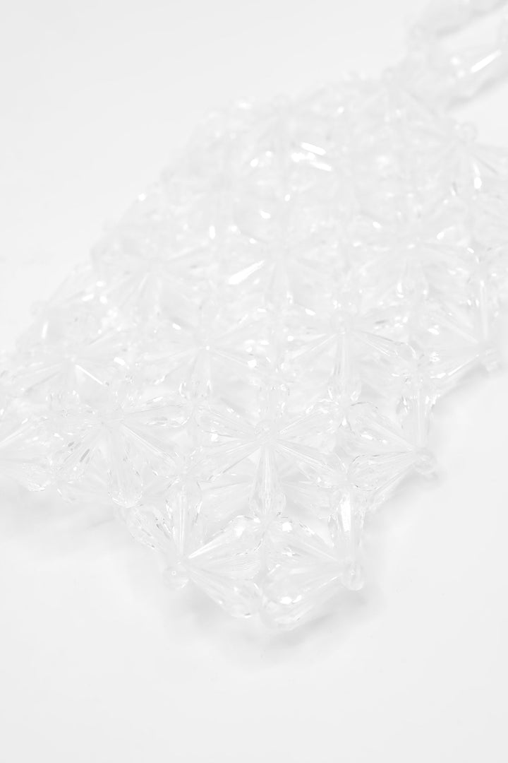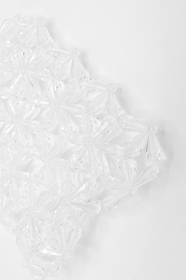 An innovative design to another level with this crystalized mini bag. Its rectangle-shaped silhouette is enriched by a snowflake effect for a catchy look. A statement bag to pair with dazzling outfits.