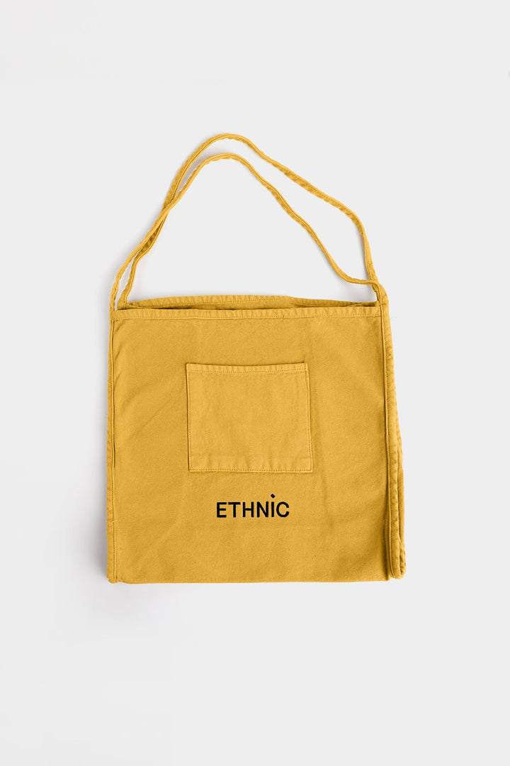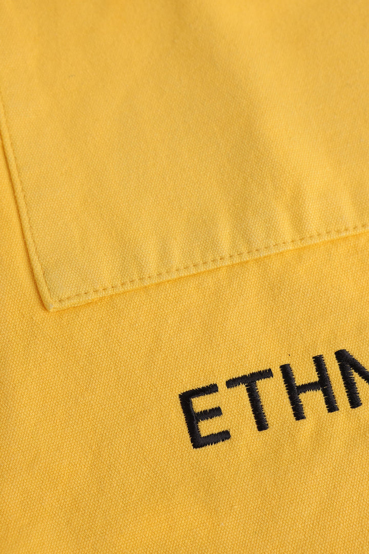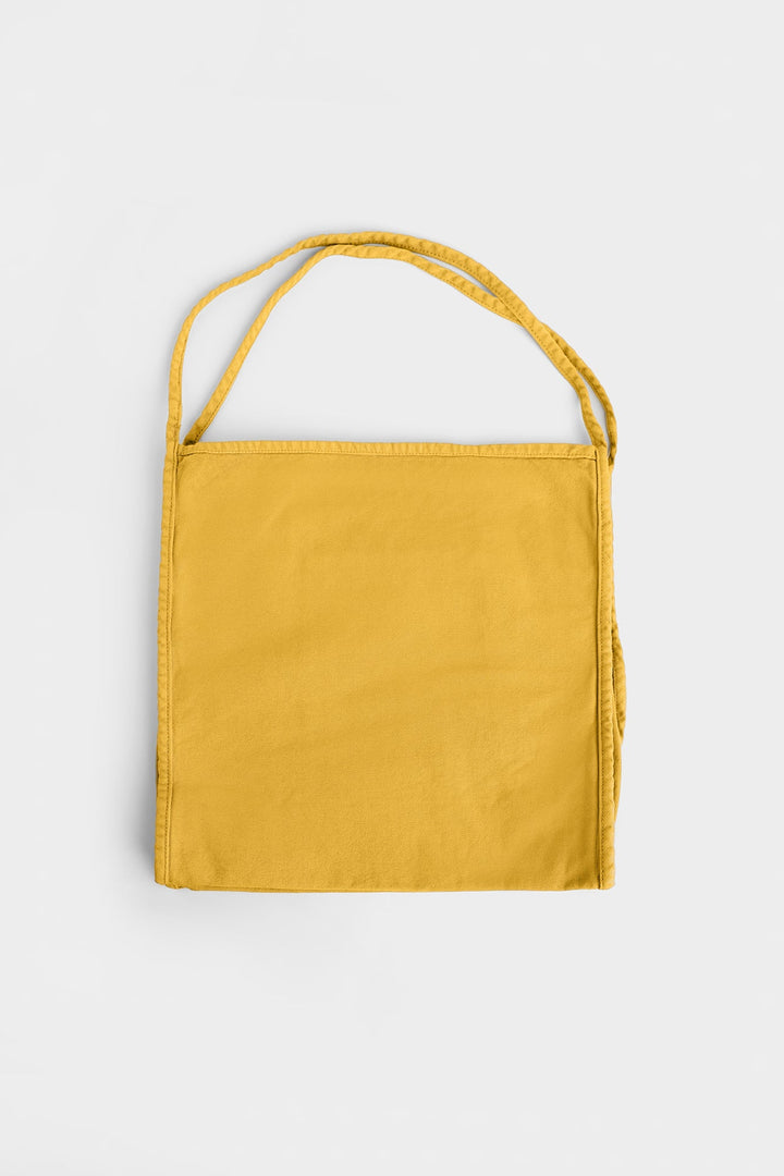 The minimalistic twill shopper bag makes a fashionable statement with its contemporary look and attractive design. Crafted from pale yellow twill fabric, the bag features text embroidery at the front, making it the perfect accessory for any trendsetter.