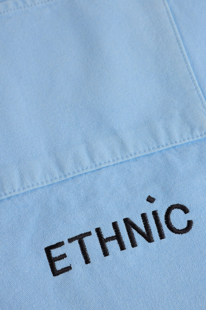 The minimalistic twill shopper bag makes a fashionable statement with its contemporary look and attractive design. Crafted from blue twill fabric, the bag features text embroidery at the front, making it the perfect accessory for any trendsetter.
