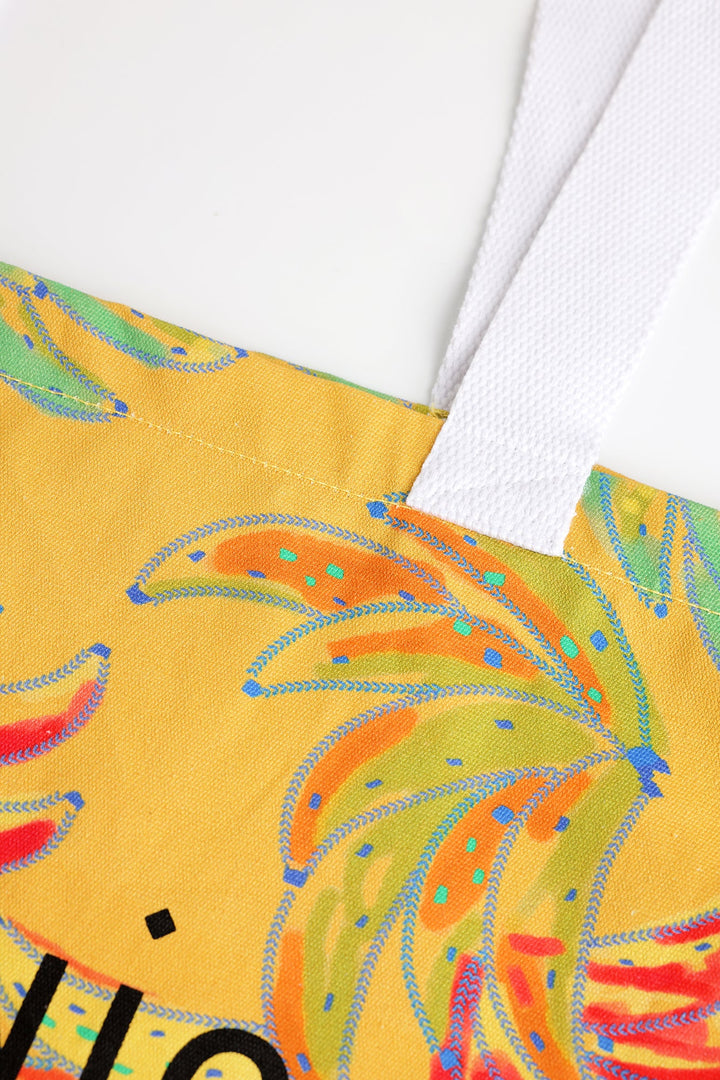 Inspired by artistic approach, this gleaming yellow shopper bag is decorated with captivating abstract prints in vibrant hues. This contemporary bag depicts the latest trends and compliment the aesthetic look.