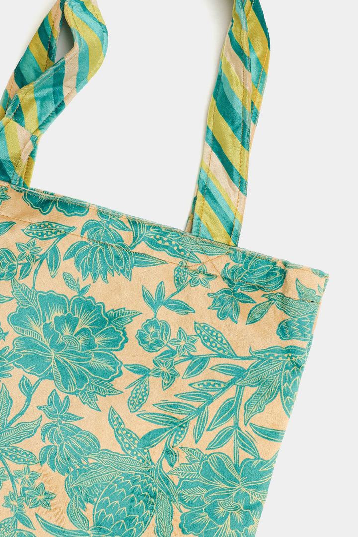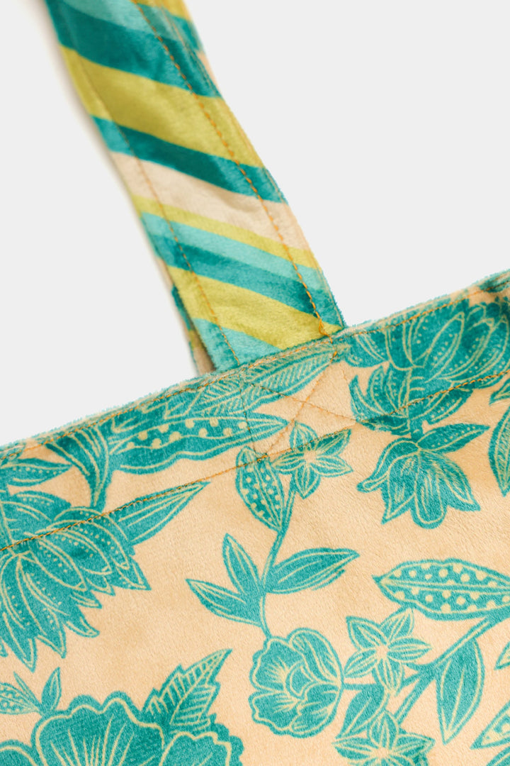 Expertly designed BAG with an off-white base and a beautiful lite greenish-blue flower pattern, perfectly complemented by a striped strap. Made with the highest quality materials, this bag is both stylish and durable. Add a touch of elegance to your wardrobe with this must-have bag.