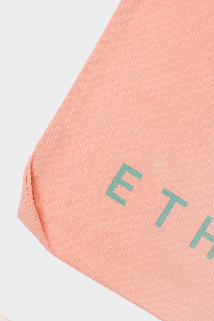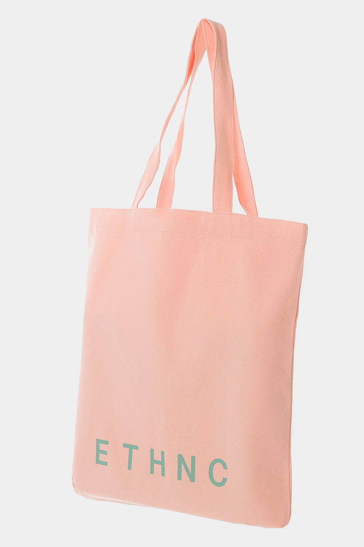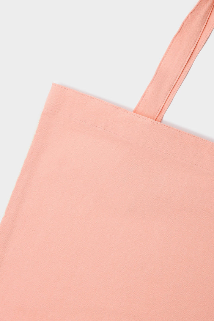 A simple and minimalist pink tote bag.The design is clean and modern. The overall color palette of light pink and teal creates a soft yet stylish look. The bag appears to be unstructured, making it lightweight and versatile, suitable for casual use like shopping, carrying books, or everyday errands.