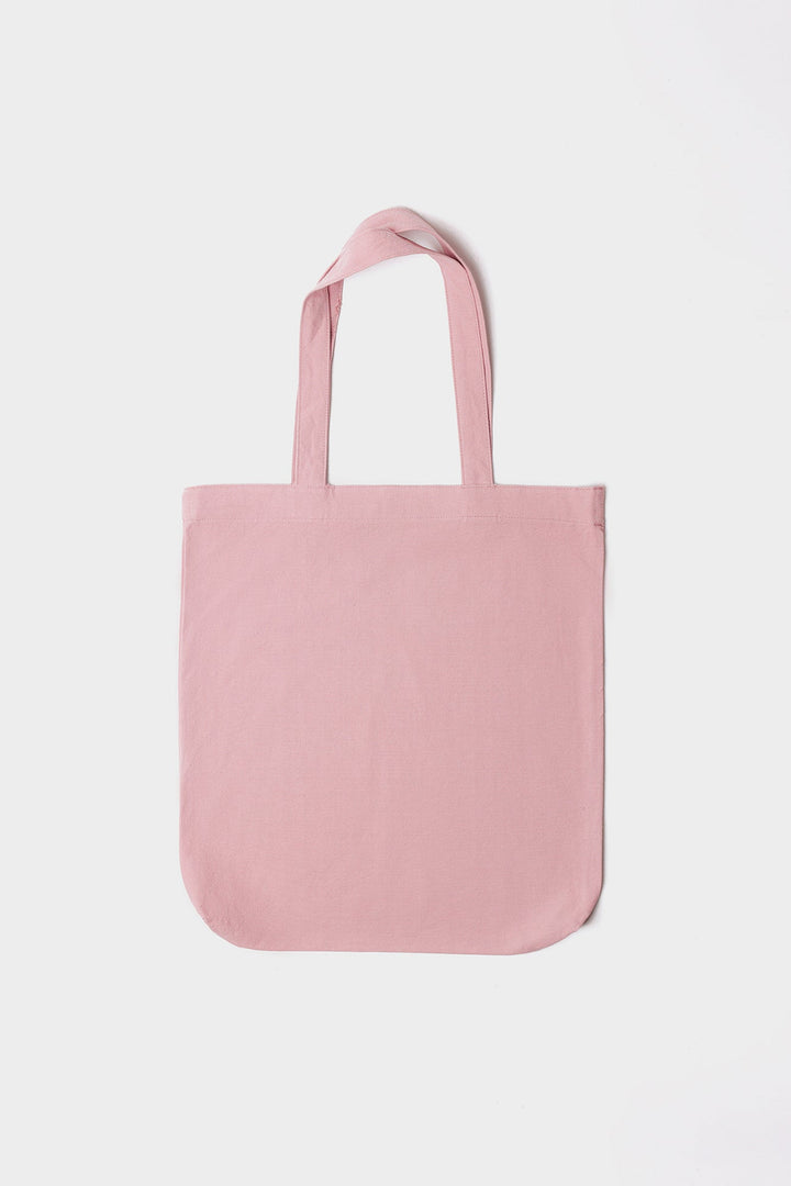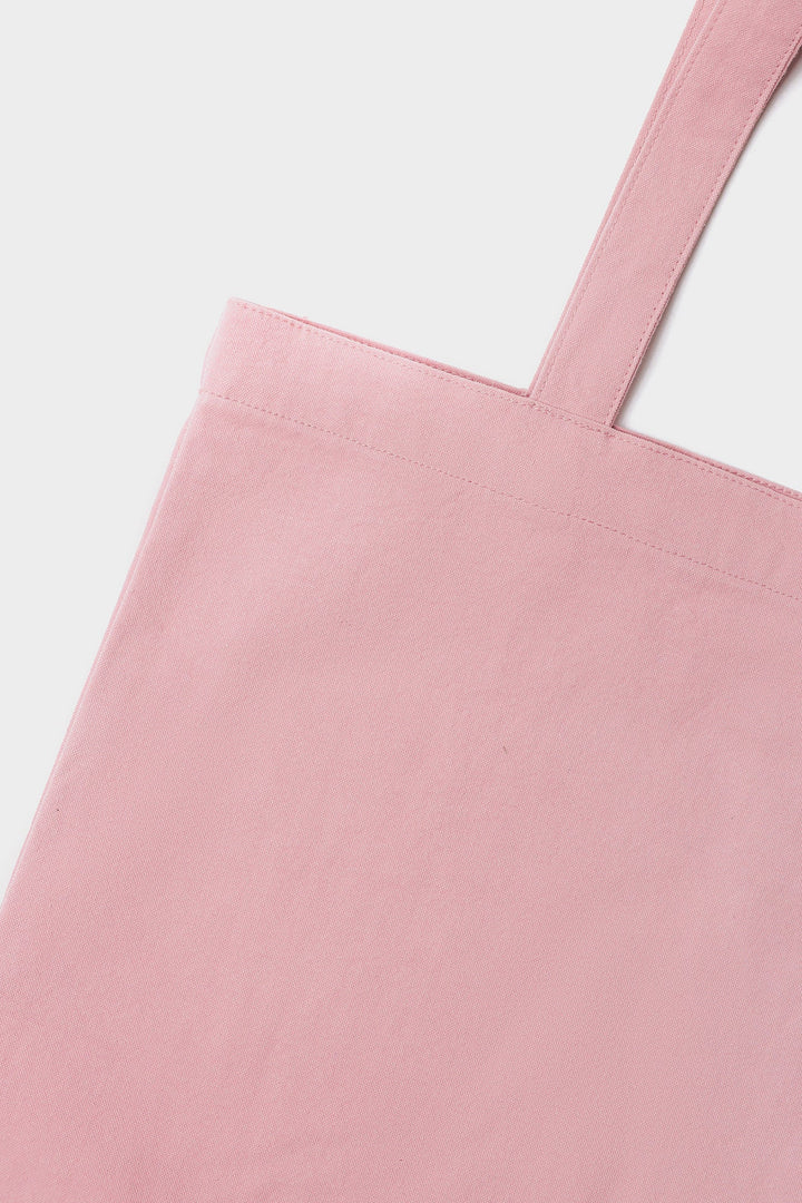 A simple and minimalist pink tote bag.The design is clean and modern. The overall color palette of light pink and teal creates a soft yet stylish look. The bag appears to be unstructured, making it lightweight and versatile, suitable for casual use like shopping, carrying books, or everyday errands.