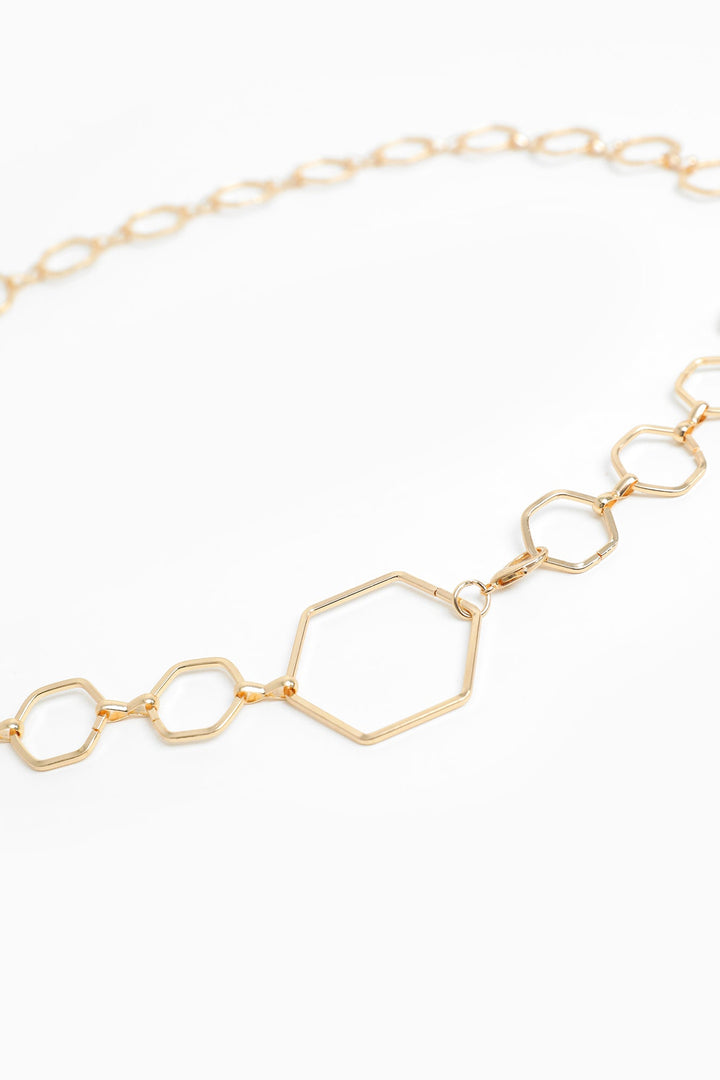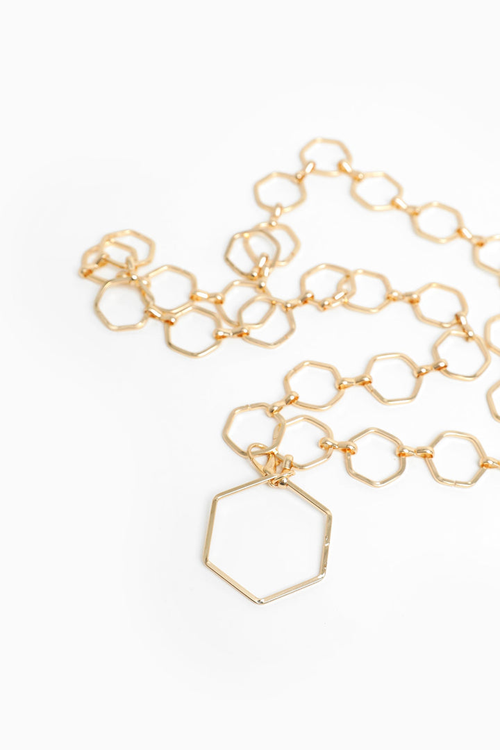If you want to amp up the glamour, this graceful chain-link belt is just the ticket. From the classy hexagon shape chain in gold accents, this chic belt is a style statement for fun parties.