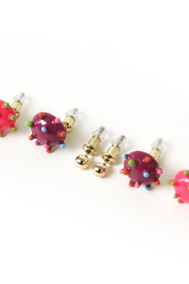 Attractive designs are portrayed on these trendy earrings illustrating quirky silhouettes in vibrant hues. Comprising of studs in gold accents, these gorgeous accessories are a great option to style with elegant outfits.