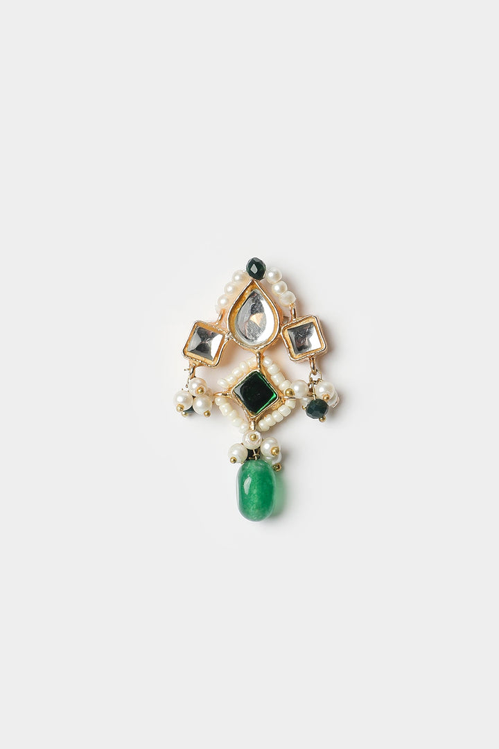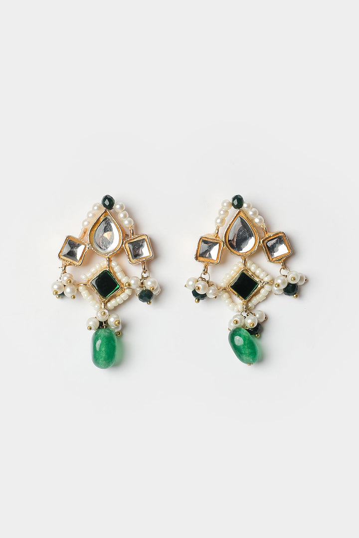 Mesmerizing design is layered over these graceful earrings adorned with beads and stones in enchanting green and enhanced with pearls. These chic earrings are a great option for formal looks.