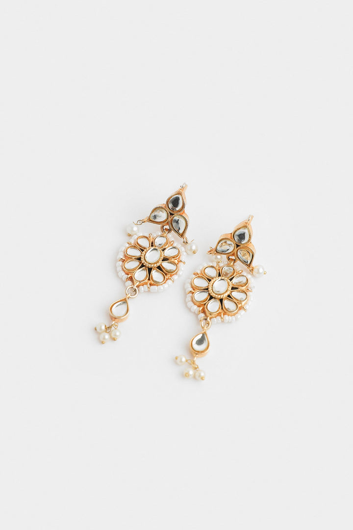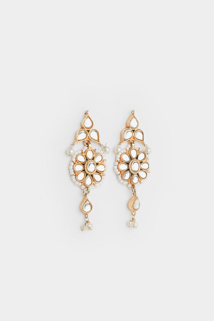 Style statement designs are portrayed on these exquisite earrings crafted with contemporary floral silhouettes in gold accents and embellished with dazzling stones in scintillating hues. Style these classy earrings and embrace the gorgeous look this season.