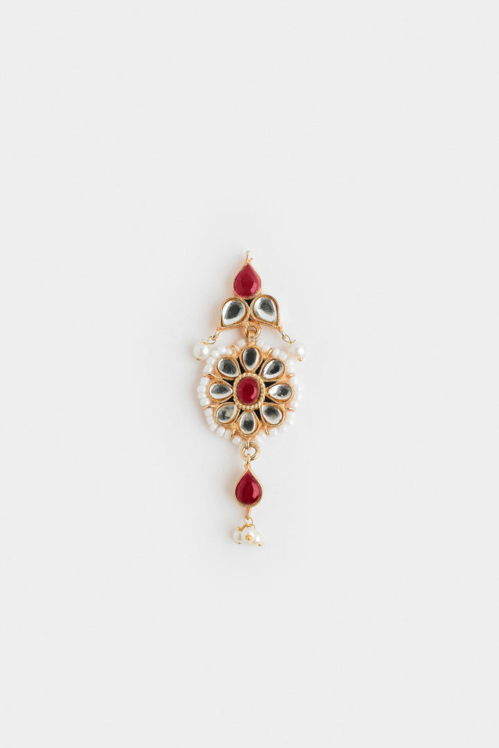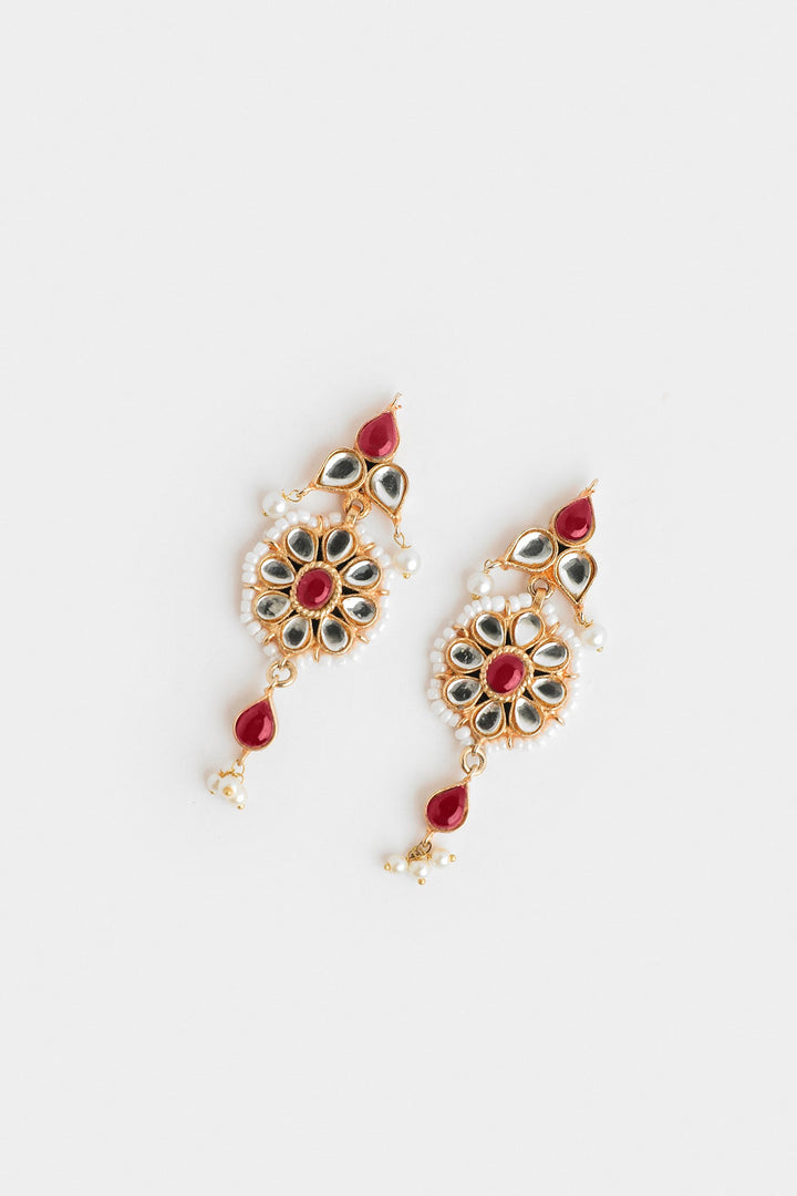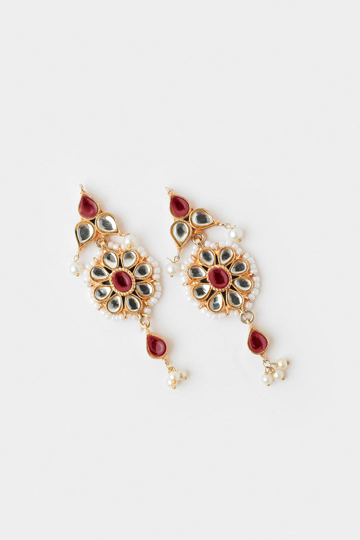 Style statement designs are portrayed on these exquisite earrings crafted with contemporary floral silhouettes in gold accents and embellished with dazzling stones and enhanced with burgundy shade. Style these classy earrings and embrace the gorgeous look this season.