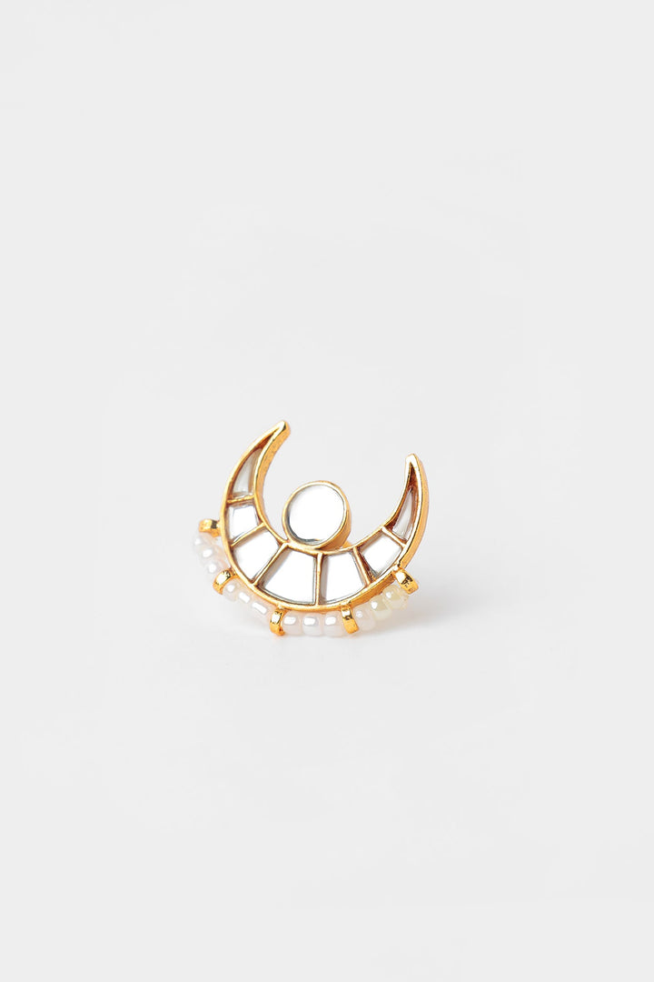 Look the epitome of grace this festive season with these delicate earrings illustrating moon silhouette adorned with dazzling crystals and enhanced with gold accents. Style this traditionally rich earrings with resplendent outfits.