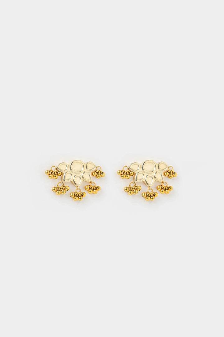 The scintillating design of lotus golden earrings with hangings has an eye-catching allure that adds an extra dimension of charm to any outfit.