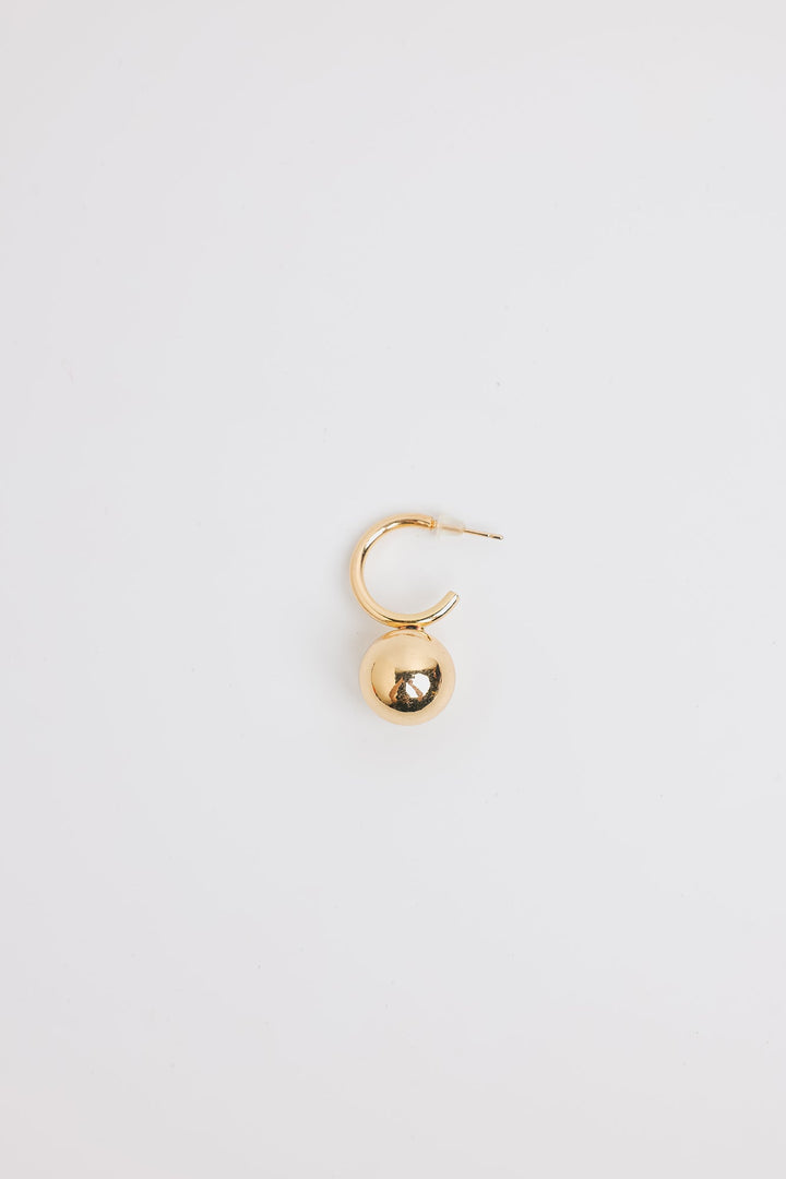 These earrings feature a small semi-circle design paired with a stunning gold-colored pearl. With just the right touch of elegance, these earrings are perfect for any occasion. Enhance your look with these timeless and versatile accessories.