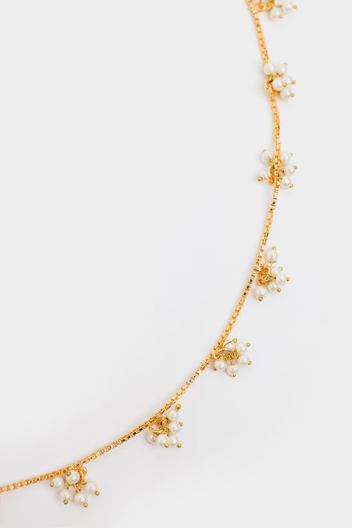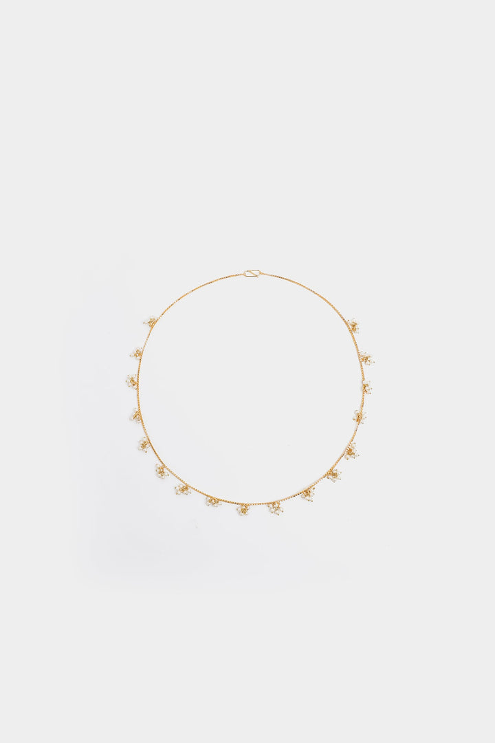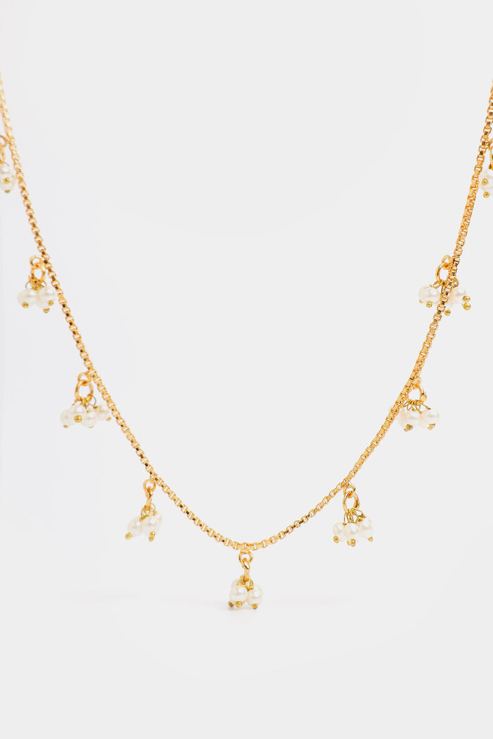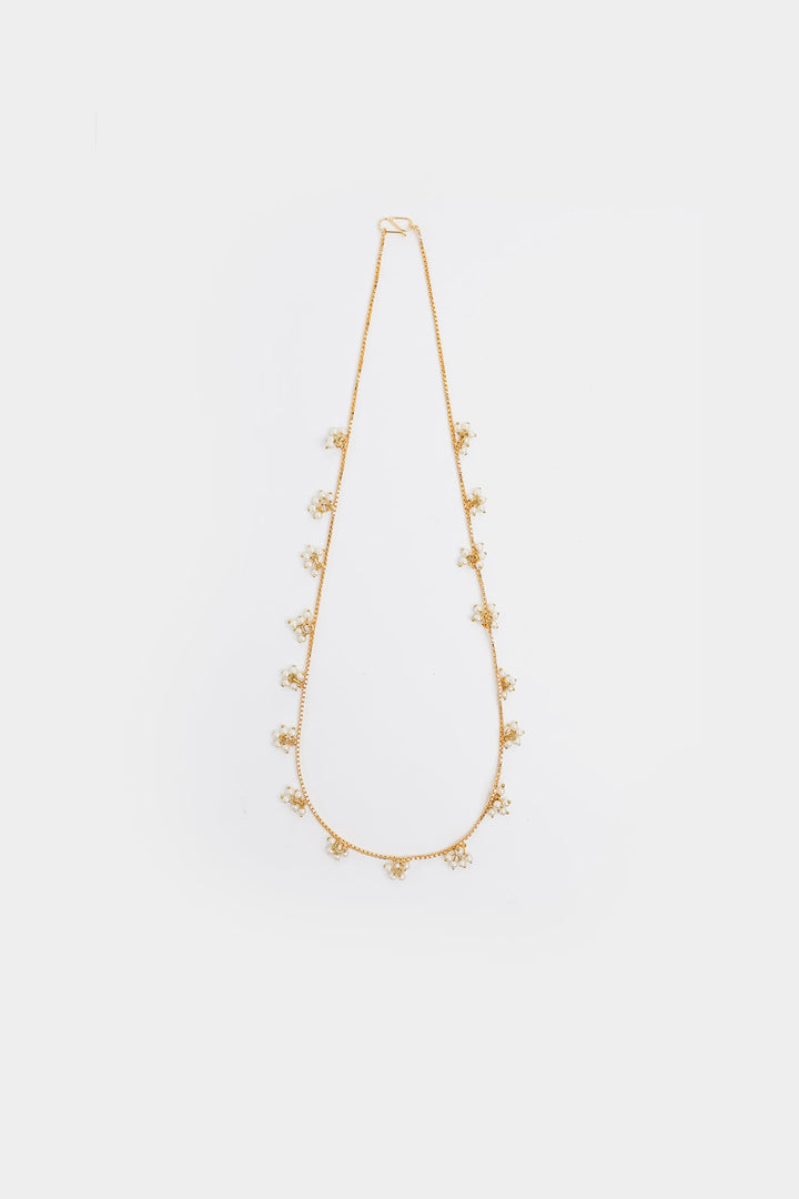 Accessorize in style with our necklace! Featuring exquisite kundan and white bead hangings, this necklace is perfect for adding a touch of elegance to any outfit. Make a statement with this timeless piece, perfect for any occasion.