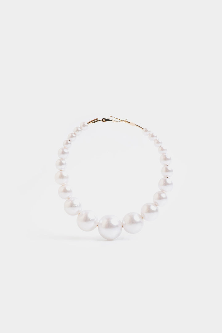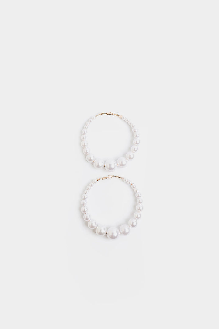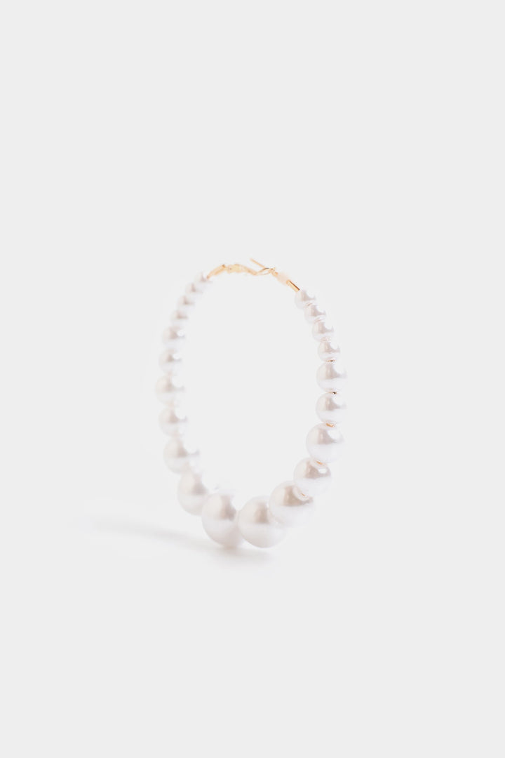 Make a timeless statement with these elegant hoop earrings, beautifully embellished with graduating faux pearls. Their classic design offers a sophisticated touch, perfect for adding a touch of luminous charm to any ensemble, from casual to chic.