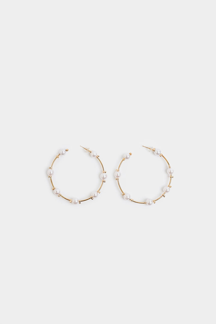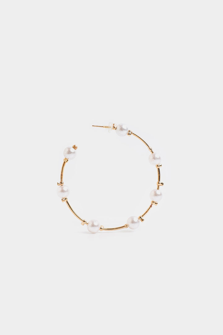 Embrace delicate elegance with these slender gold hoop earrings, adorned with spaced luminous pearls. A subtle yet sophisticated accent to elevate any look.