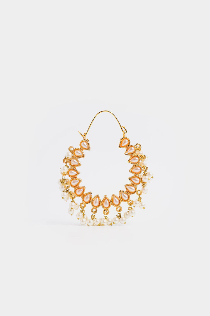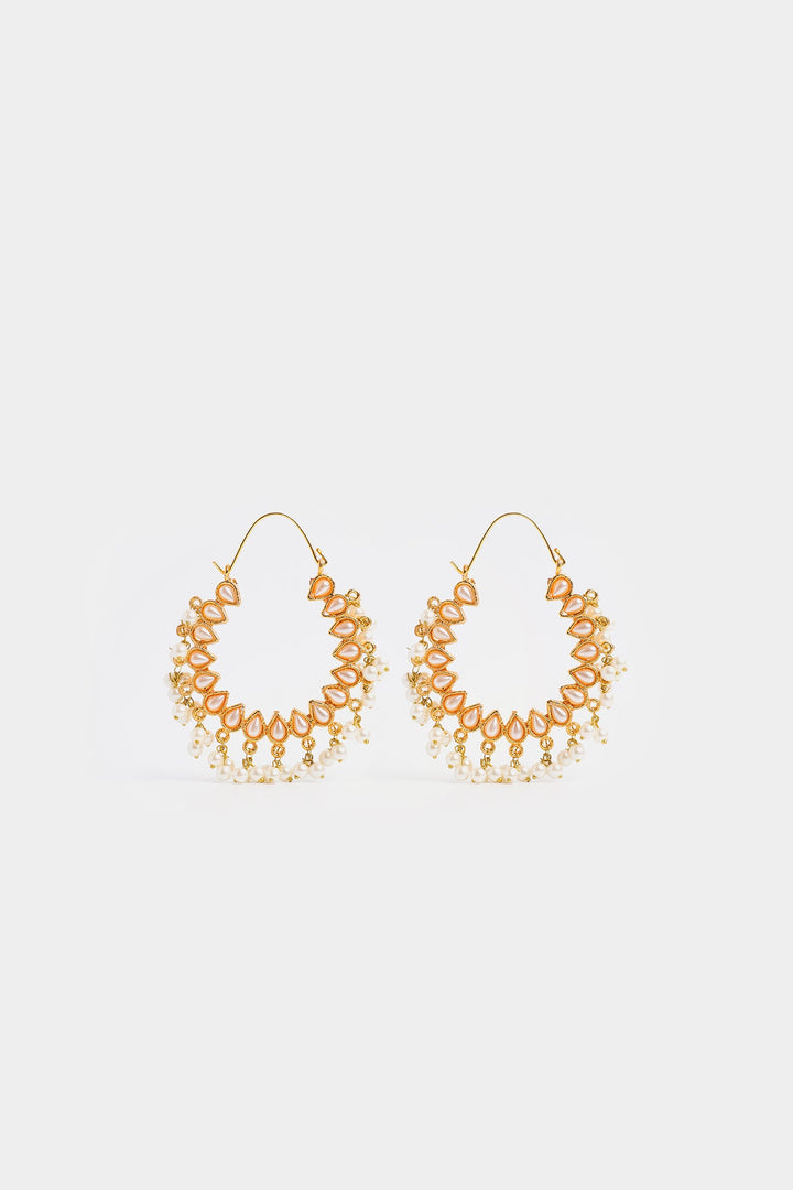 Dazzle with every sway in these radiant pearl-drop hoops. Featuring a unique tear-drop shaped frame, each segment is illuminated with a glistening stone, while a playful cascade of delicate pearls adds a touch of classic elegance. Perfect for elevating your look for any festive occasion or adding graceful movement to your everyday style.