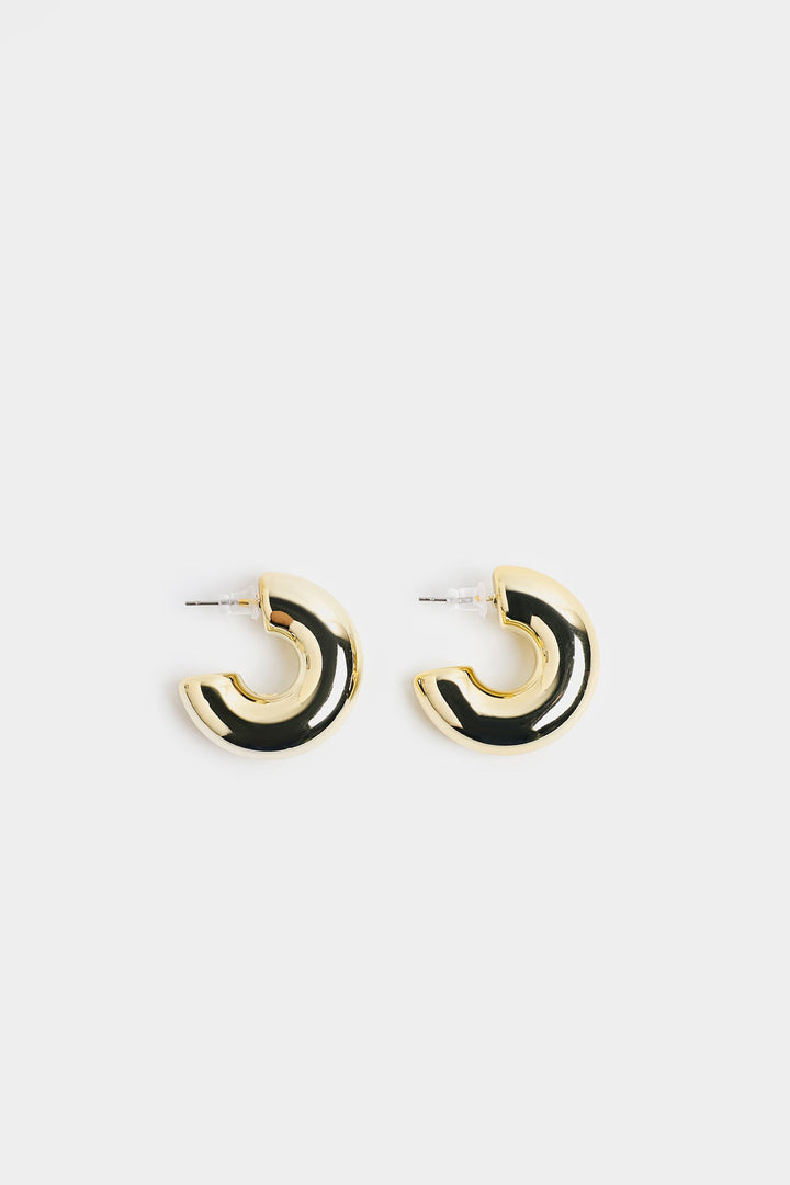 Embrace minimalist chic with this sleek, chunky gold-toned half-hoop earrings offering a contemporary edge and effortless sophistication for everyday wear or special occasions.
