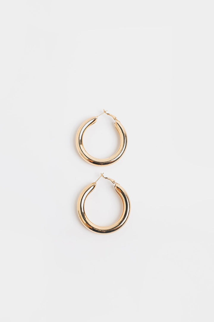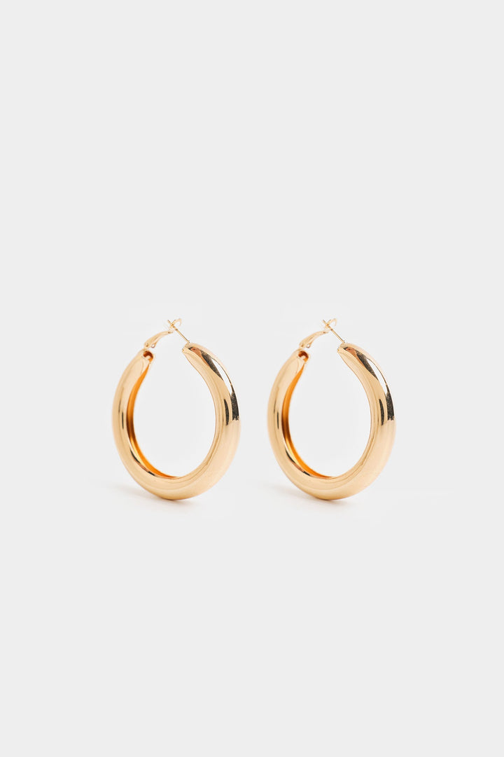 Add a touch of modern flair with these unique geometric gold-toned hoop earrings. Their sleek, sculptural design offers a bold yet refined statement.