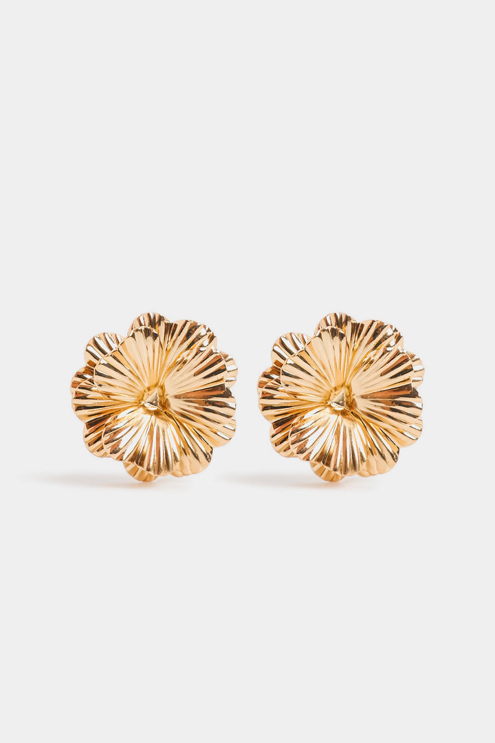 These earrings feature a delicately crafted flower-shaped stud design, expertly combining natural elegance with refined detail. Ideal for adding a subtle yet sophisticated touch to any ensemble.