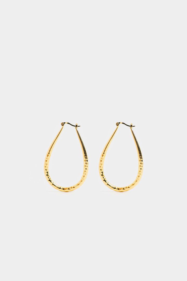 Elevate your everyday with these sleek and stylish golden teardrop hoop earrings. Their gently hammered texture catches the light beautifully, adding a subtle shimmer to any look. Lightweight and versatile, these hoops are the perfect touch of understated elegance for your daily adventures.
