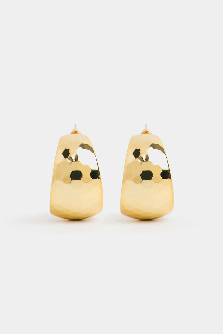 Elevate your everyday with these uniquely textured gold-toned hoop earrings. Their subtle, ribbed design catches the light beautifully, offering a sophisticated and modern twist on a timeless classic, perfect for any occasion.