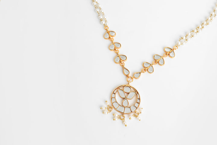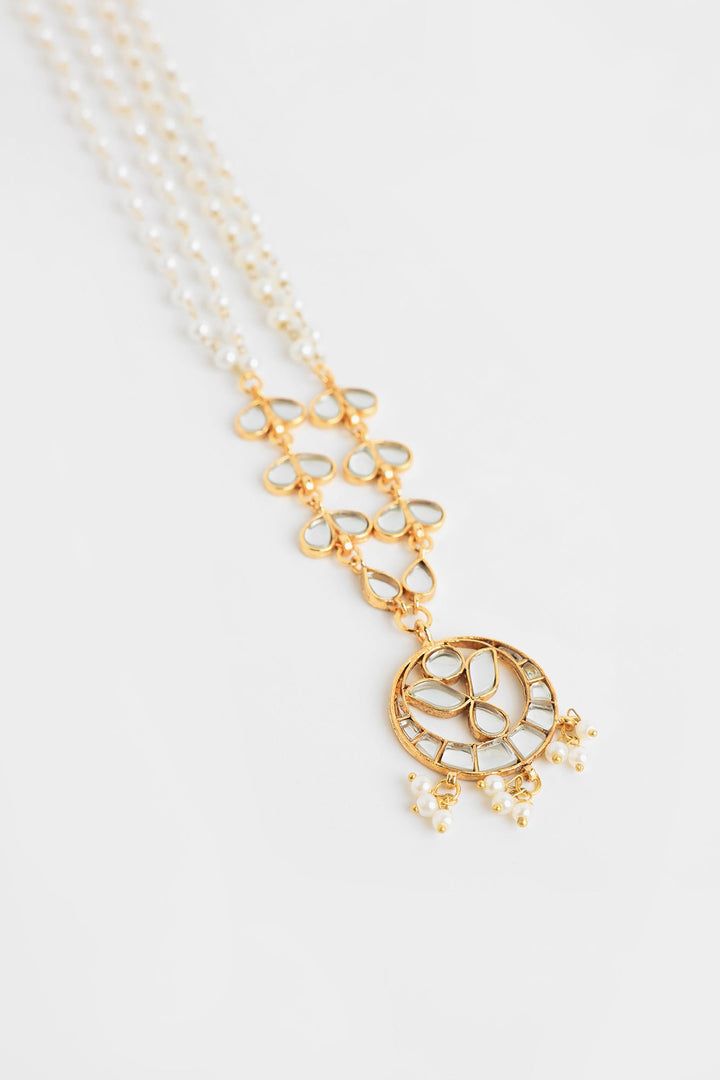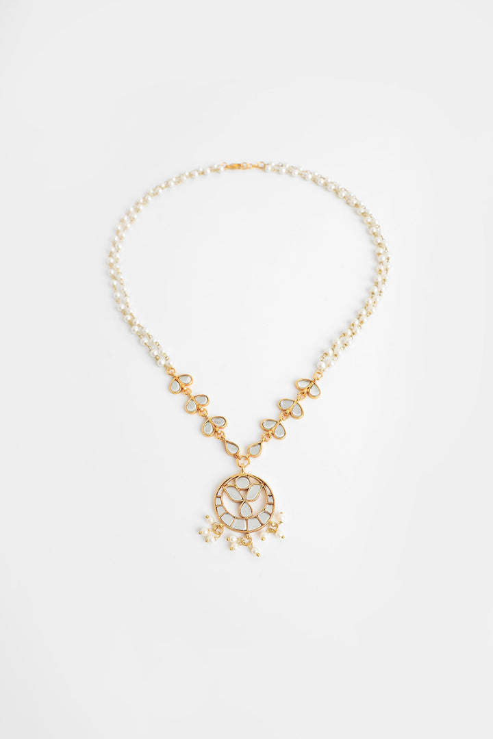 A contemporary design is portrayed on this elegant necklace comprised of delicate beads string in gold accents. Complimented with a trendy floral pendant studded with dazzling stones, this exquisite necklace is great option to style with sophisticated outfits.