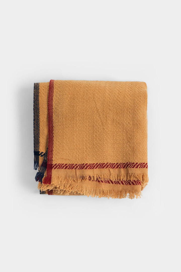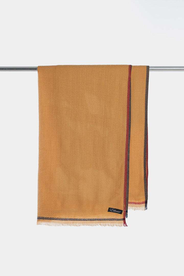 An artistically rich composition is portrayed on this elegant shawl portraying a mesmerizing light mustard canvas adorned with captivating stripe designs in contrasted deep black and maroon tones. Style this sophisticated shawl with contemporary outfits and look graceful.
