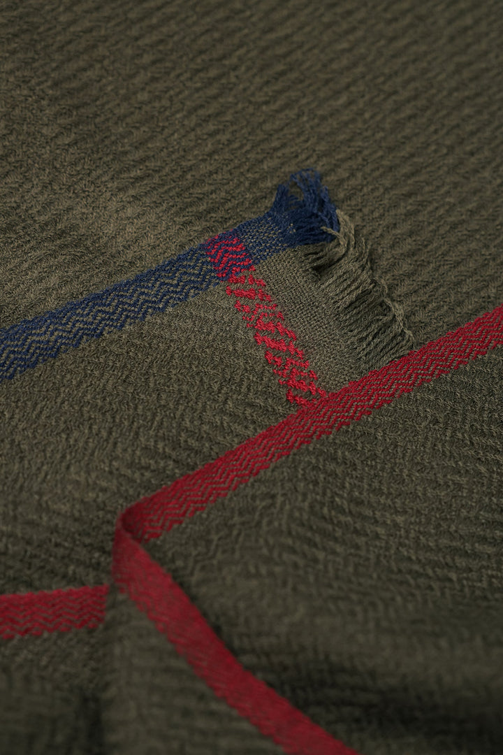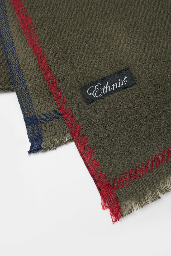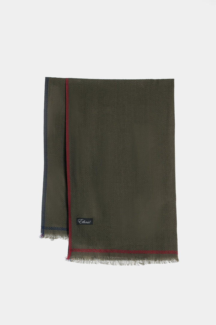 A gracefully elegant composition is portrayed on this classy shawl rendered in a captivating green shade. Adorned with stripes at borders in contrasted blue and deep red tones, style this statement shawl with variety of outfits and be the epitome of grace and sophistication this season.