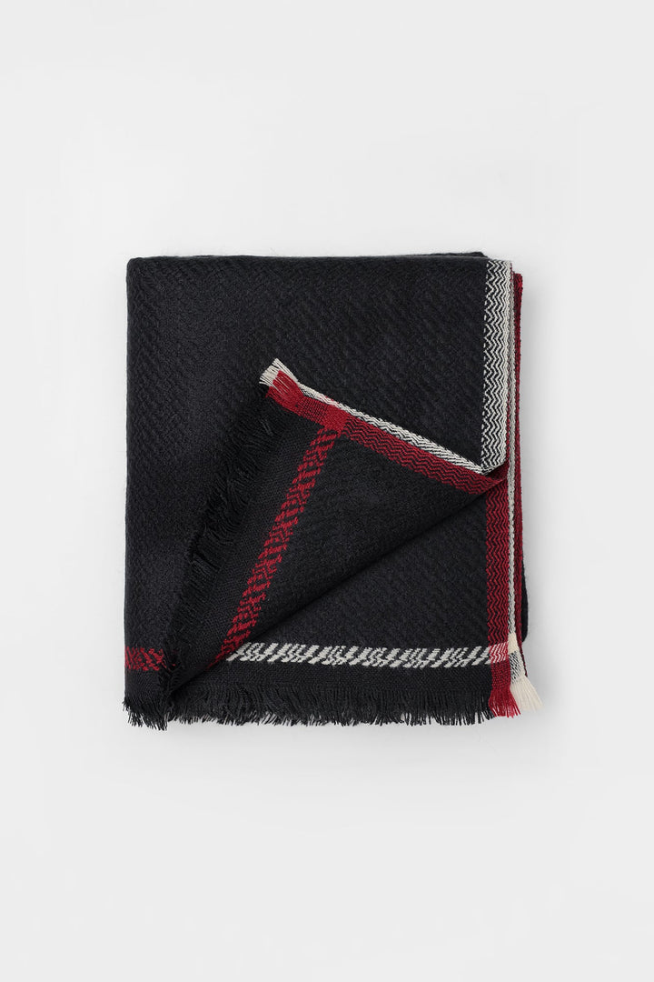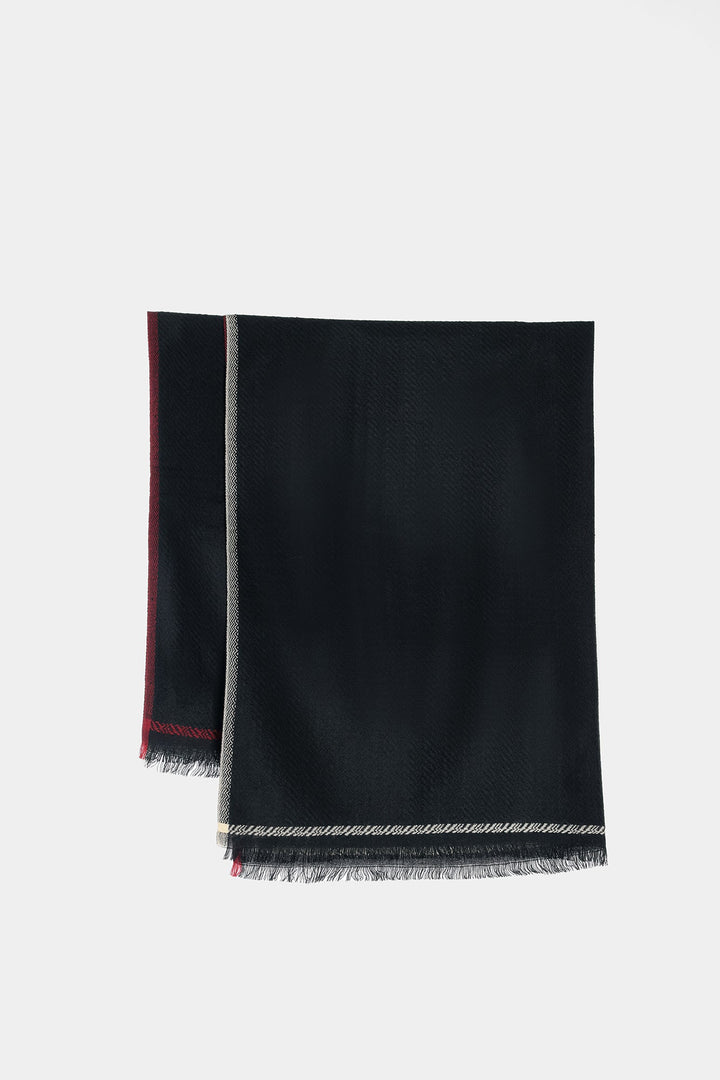 A gracefully elegant composition is portrayed on this classy shawl rendered in a captivating green shade. Adorned with stripes at borders in contrasted blue and deep red tones, style this statement shawl with variety of outfits and be the epitome of grace and sophistication this season.