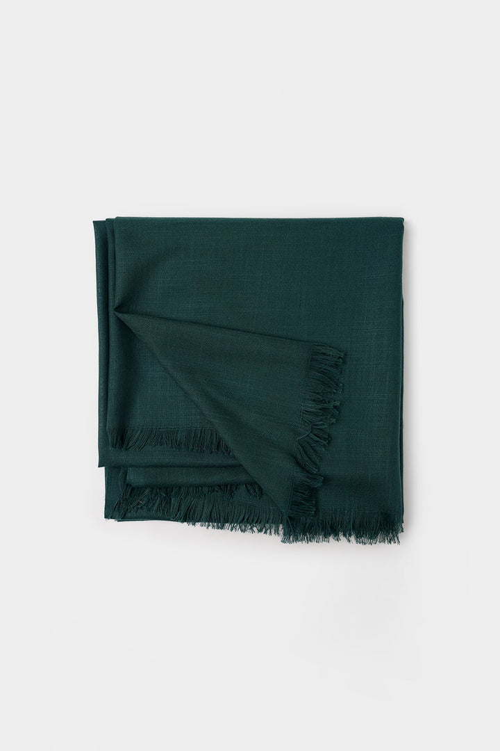A gracefully draped knitted shawl rendered in an enchanting forest green shade, exemplifies pure elegance. Style this exquisite shawl with gorgeous outfits and compliment the sophisticated look this season.