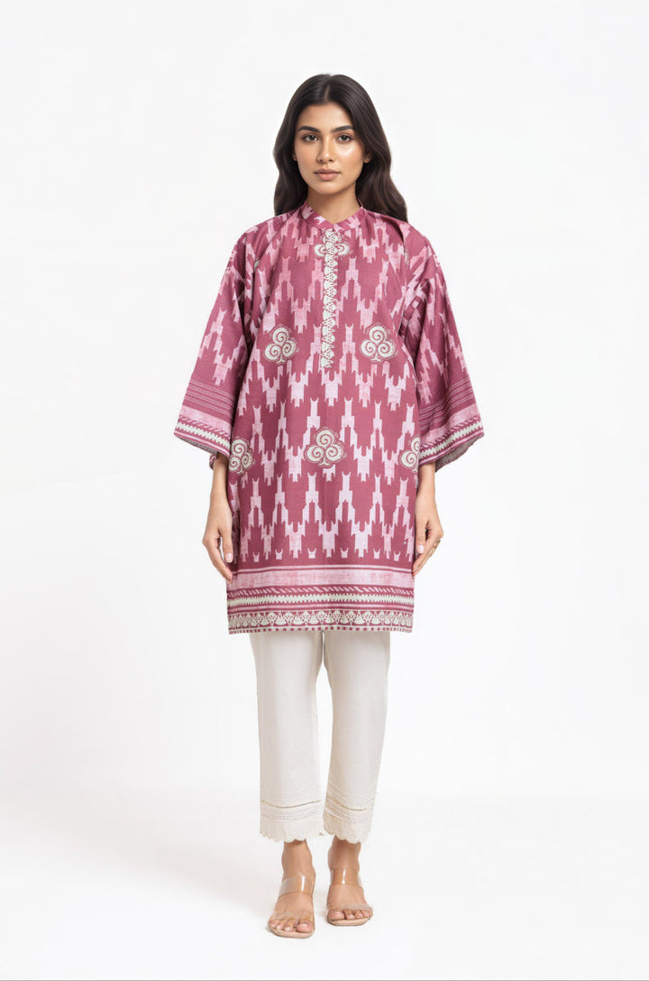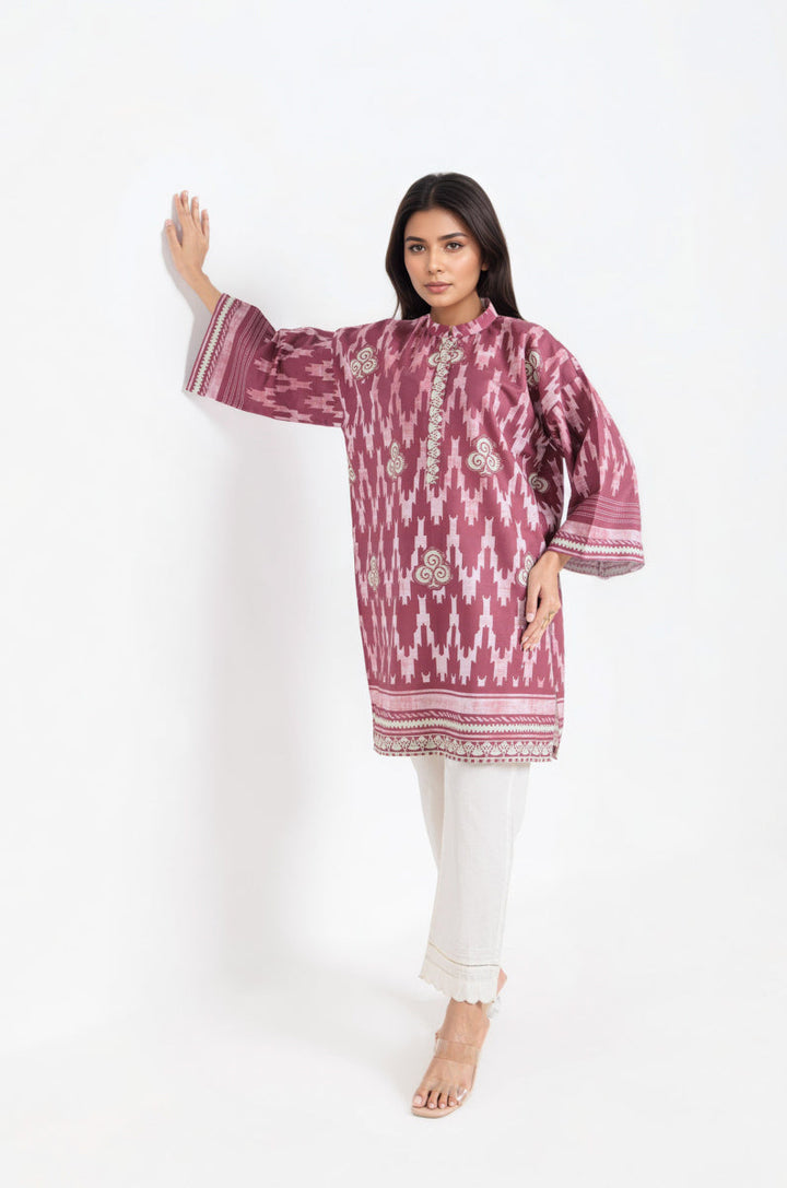 Printed Light Khaddar Drop Shoulder Boxy Kurta.