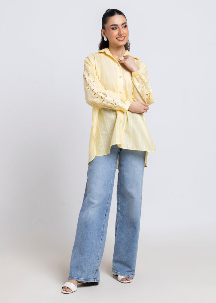 Dyed Self Jacquard Shirt with Lace Finishing & Buttons.