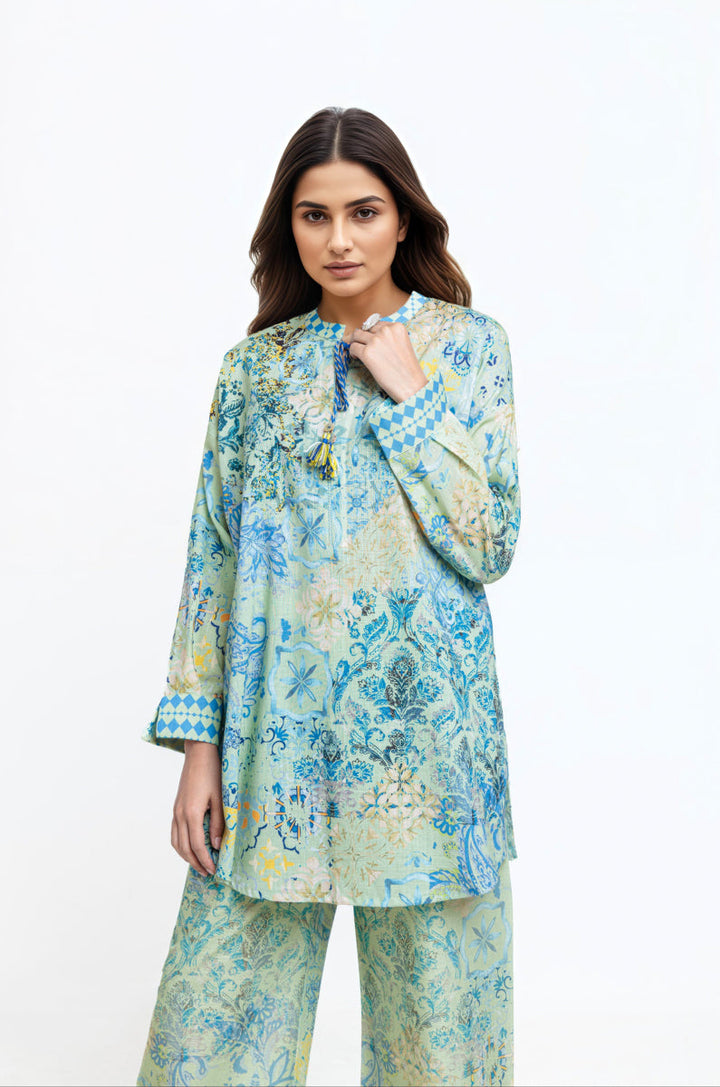 Printed Cross Hatch Drop shoulder Loose Shirt