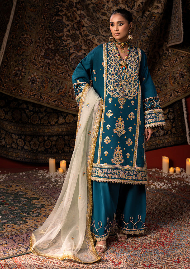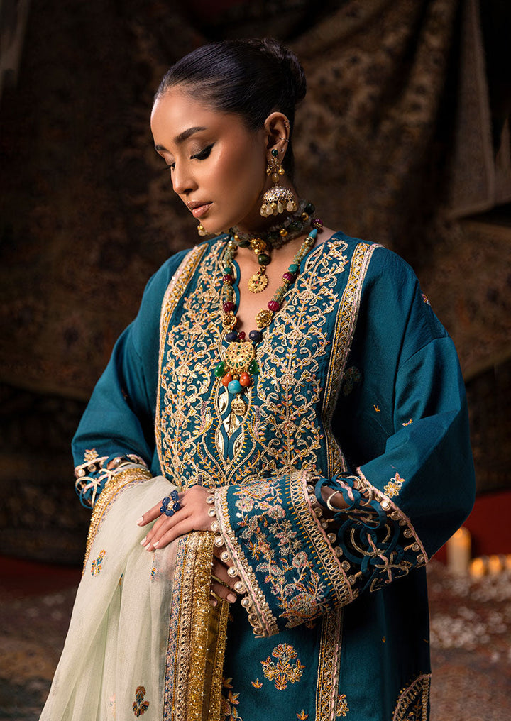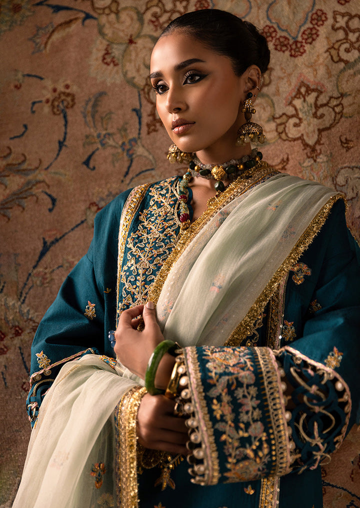Embroidered Front, Back & Sleeves Border on Cotton Silk