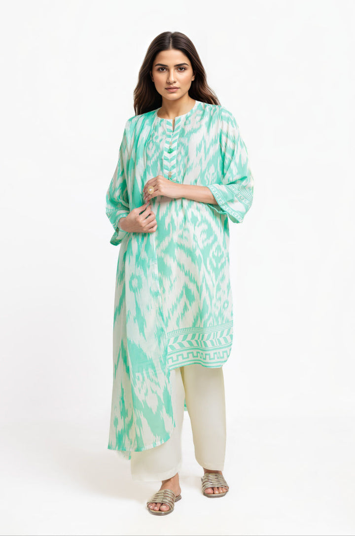 Printed Poly Lawn Straight Shirt