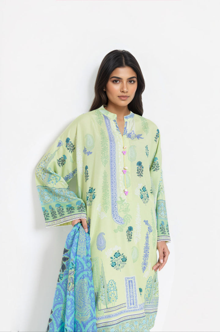 Printed Poly Lawn Drop Shoulder Loose Shirt.