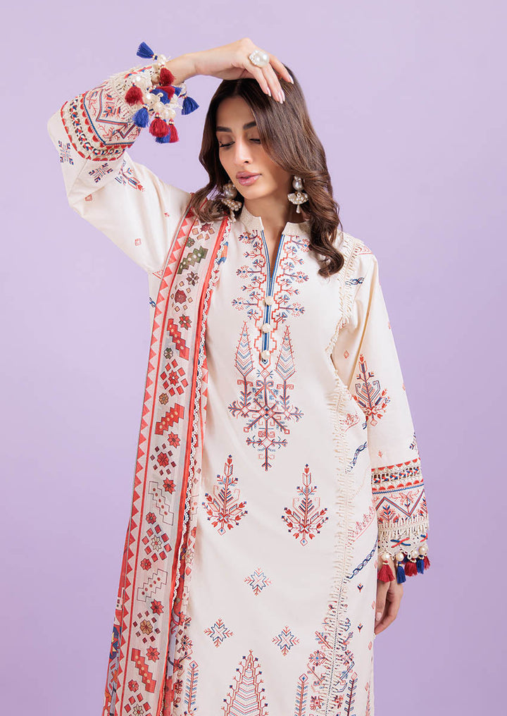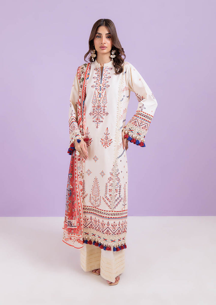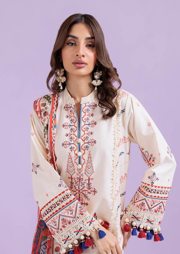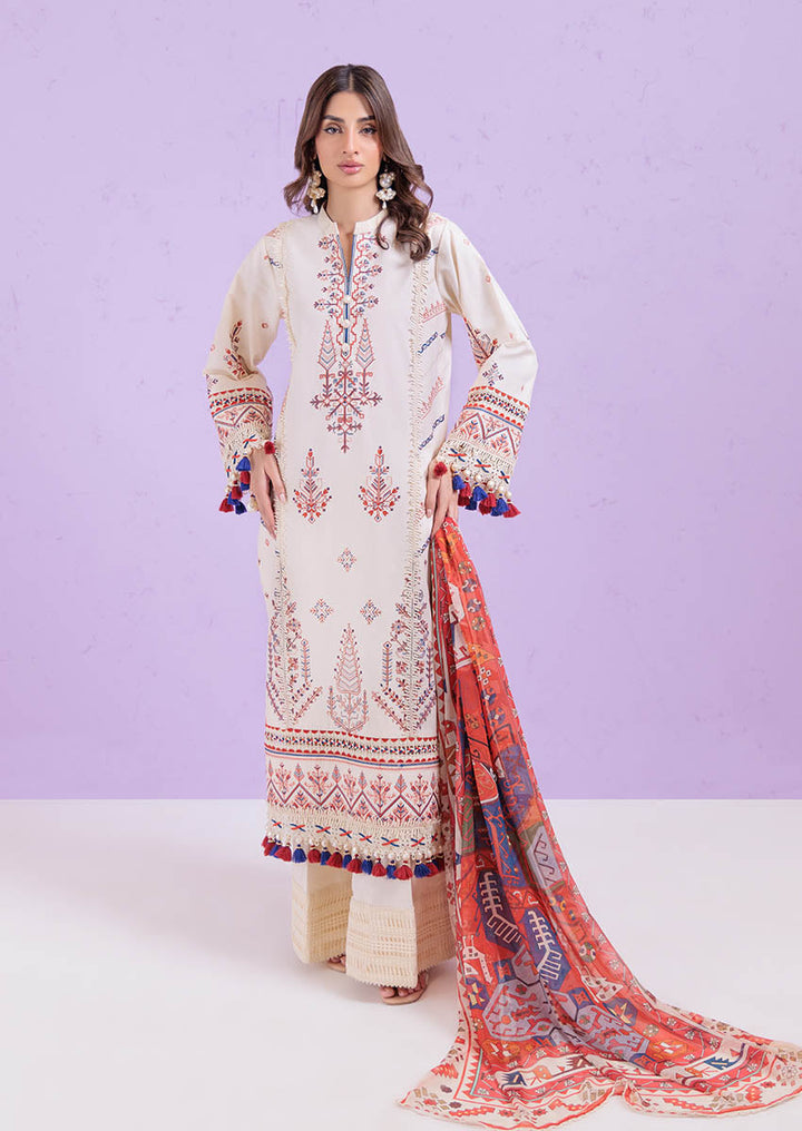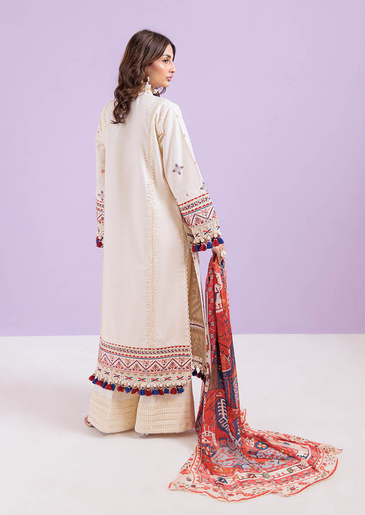 Step into tradition with this unstitched ensemble inspired by the rich artistry of kilim patterns and ethnic rug motifs. Set against a warm off-white base, the kurta features intricate geometric and folkloric embroidery in terracotta, indigo, and sapphire tones. Accented with colorful tassels and paired with a printed dupatta echoing carpet-weave aesthetics, this design blends age-old craftsmanship with a statement of cultural elegance.