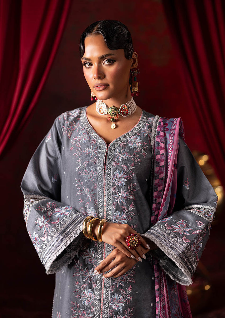 Embroidered Front & Back Border on Cotton Net